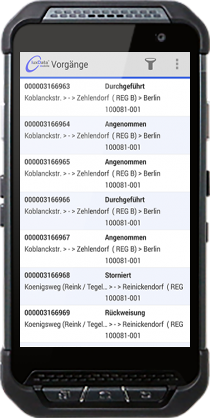 luxData.mobileApp ist für Android- und iOS-basierte Geräte verfügbar, dadurch sind Sie in der Auswahl der Geräte flexibler. Im Aufbau ist luxData.mobileApp identisch, egal ob auf einem Android-Gerät oder iPhone/iPad.