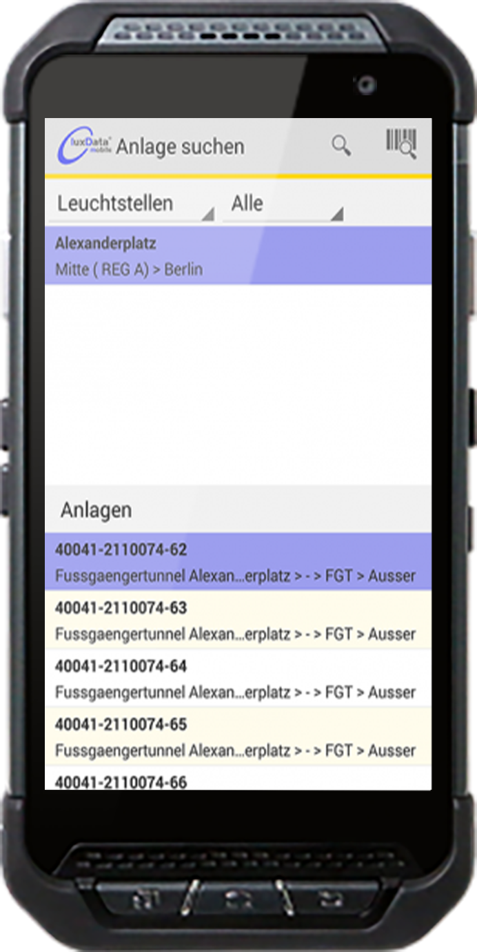 Mit luxData.mobileApp stellen Sie Ihren Monteuren alle erforderlichen Daten über Anlagen (Leuchtstellen, Lichtsignalanlagen, Ladestationen), Wartungsaufgaben, Störungen usw. mobil zur Verfügung. Durch die Mobilität sparen Sie nicht nur Zeit, die Fehleranfälligkeit wird ebenfalls minimiert.