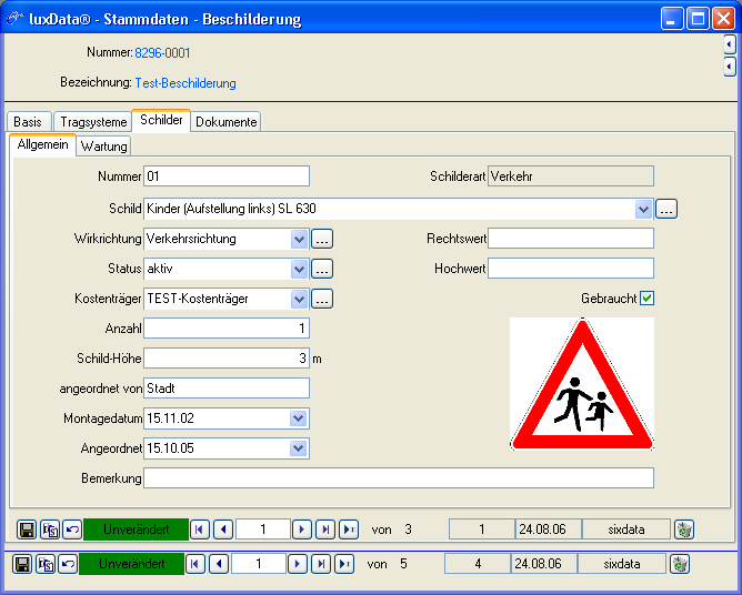 Abbildung sämtlicher Daten die bei Ihren Verkehrszeichen relevant sind.